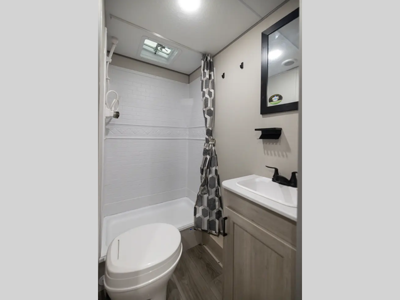 Sleeps 8 Slides 1 Length 28 ft 4 in Ext Width 8 ft Ext Height 11 ft 1 in Int Height 6 ft 9 in Hitch Weight 762 lbs GVWR 7762 lbs Dry Weight 5872 lbs Cargo Capacity 1890 lbs Fresh Water Capacity 38 gals Grey Water Capacity 44 gals Black Water Capacity 30 gals Number Of Bunks 2 Available Beds Queen Refrigerator Size 10.7 cu ft Cooktop Burners 3 Shower Size 24" x 40" Number of Awnings 1 LP Tank Capacity 20 lbs. Water Heater Type Tankless On Demand AC BTU 13500 btu Awning Info 14' Electric with Multicolored LED Light Strip Axle Count 2 Number of LP Tanks 2 Shower Type Sunken Tub/Shower Electrical Service 30 amp Similar Floorplans