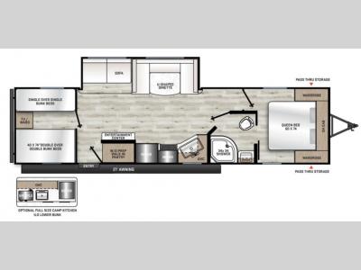 Coachmen prides themselves in having the perfect balance of features and functionality with features like MORryde StepAbove Solid Step entrance steps, the electric awning with multicolor LED strip and remote, and the universal solar prep. A cambered structural steel I-beam frame holds it together and a seamless Alpha roof membrane protects the units interior. Speaking of interiors, there are seamless Thermofoil countertops throughout, Congoleum woodplank linoleum flooring, USB ports, and many more comforts!