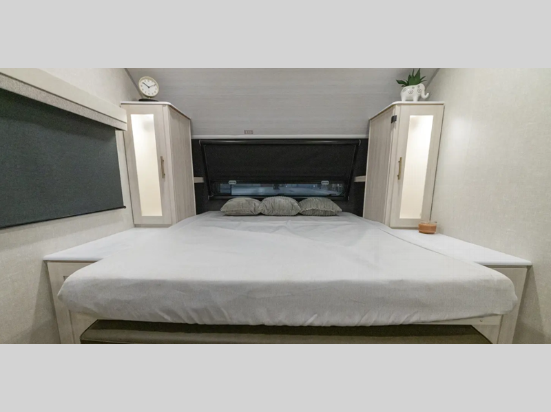 Sleeps 2 Slides 1 Length 25 ft 6 in Ext Width 8 ft Ext Height 10 ft 7 in Hitch Weight 415 lbs Dry Weight 4729 lbs Cargo Capacity 1500 lbs Fresh Water Capacity 30 gals Grey Water Capacity 30 gals Black Water Capacity 30 gals Available Beds Queen Refrigerator Type 12V Black Glass Convection Cooking Yes Cooktop Burners 2 Number of Awnings 1 Water Heater Type Tankless AC BTU 15000 btu TV Info 12V TV Awning Info 13' Power Shower Type Standard Electrical Service 30 amp Similar Floorplans