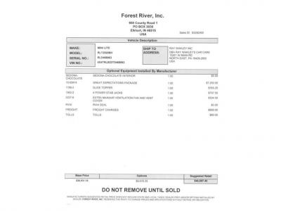 Ray Wakley's Car Care & RV Center is not responsible for any misprints, typos, or errors found in our website pages. Any price listed excludes sales tax, registration tags, and delivery fees. Manufacturer pictures, specifications, and features may be used in place of actual units on our lot. Please contact us @814-725-9608 for availability as our inventory changes rapidly. All calculated payments are an estimate only and do not constitute a commitment that financing or a specific interest rate or term is available.