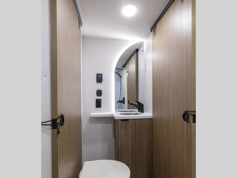 - Shower with surround (size varies by model)