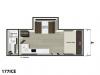 Sleeps 6 Length 21 ft 8 in Ext Width 6 ft 8 in Ext Height 10 ft 3 in Hitch Weight 435 lbs Dry Weight 3229 lbs Cargo Capacity 706 lbs Fresh Water Capacity 39 gals Grey Water Capacity 30 gals Black Water Capacity 30 gals Number Of Bunks 2 Available Beds Queen Cooktop Burners 2 Shower Size 36" x 24" Number of Awnings 1 LP Tank Capacity 20 lbs Water Heater Capacity 6 gal Water Heater Type Gas DSI AC BTU 13500 btu Awning Info 8' 12V Power Axle Count 1 Number of LP Tanks 1 Shower Type Standard Electrical Service 30 amp Similar Floorplans