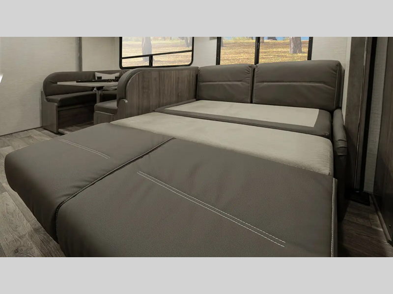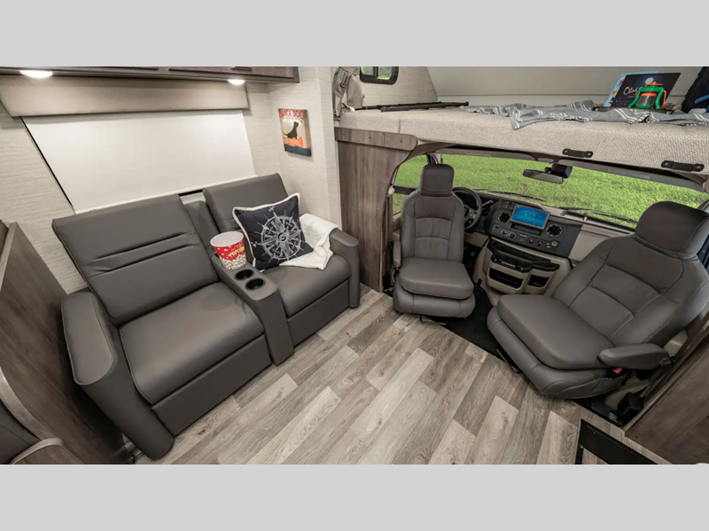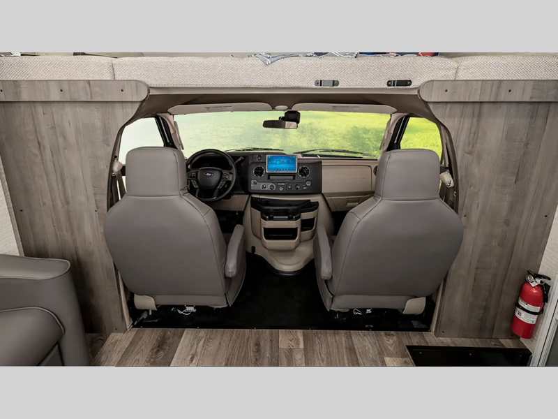 The interiors provide enough space and innovative features for your family and gear so you can enjoy the outdoors with the creature comforts of home too. Each model offers flexible sleeping options with a large cabover bunk, convertible dinette, and sofa beds. The 7.3L V8 premium engine makes short work of long hills and the cab has a commanding view of the road with a comfortable place to sit in the captain's chairs which have fixed lumbar support and multi-adjustable slide/recline positions.